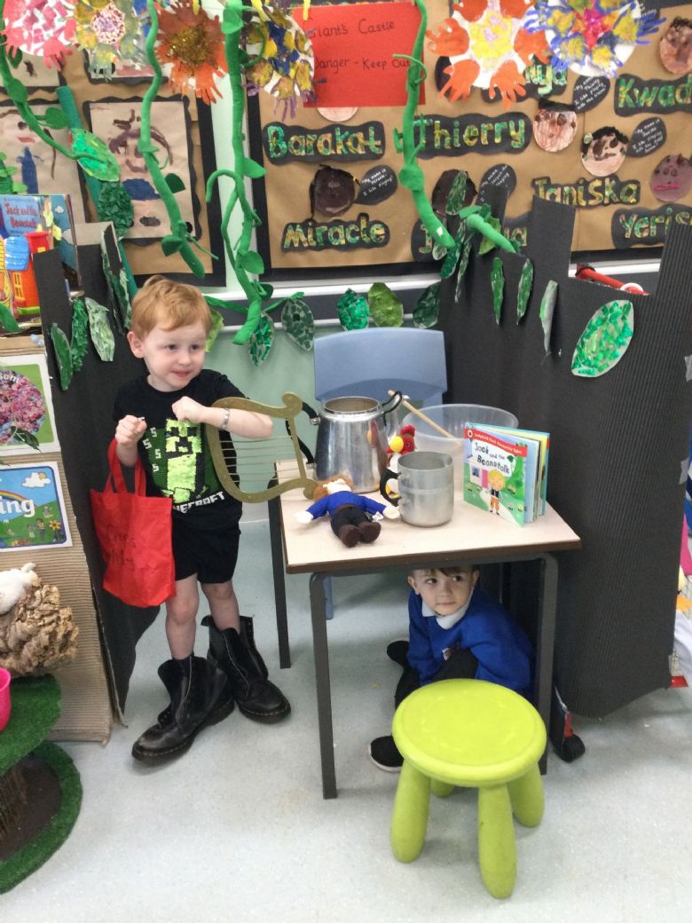Meanwhile, a Giant's Castle has appeared in our nursery - with some very scary giants with big boots, a bag of gold and a magic harp. Jack had to be very quick to hide under the giant's table!