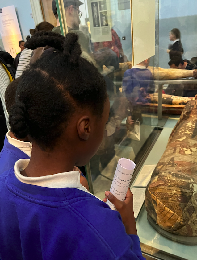 'We are fun and we are together'. This statement could not have been more true for Shackleton class, who had a very exciting visit to the British Museum on Wednesday. Last half-term, the class were learning about Ancient Greece. In their learning, they found out about many different aspects of Ancient Greece including Gods and Goddesses. This was perfect, as the Museum has an entire section of Ancient Greece, where children had to look at all the different artefacts to locate the different Gods. This self-led tour allowed children to be inquisitive, as they looked around the rooms revisiting knowledge and learning new knowledge. As they worked in their pairs to find the answers to the questions, the children found new information which they were excited to share with the rest of the class. This fits with our history values of: