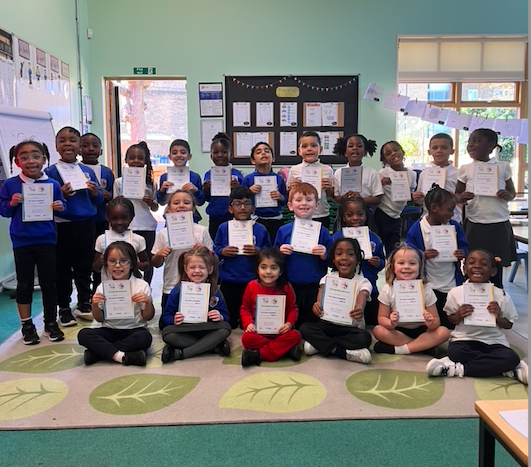 In Key Stage 1, they are looking to complete as many laps as possible in 15 minutes. These laps are recorded and then, at the end of the half-term, each child is awarded a certificate with their results.