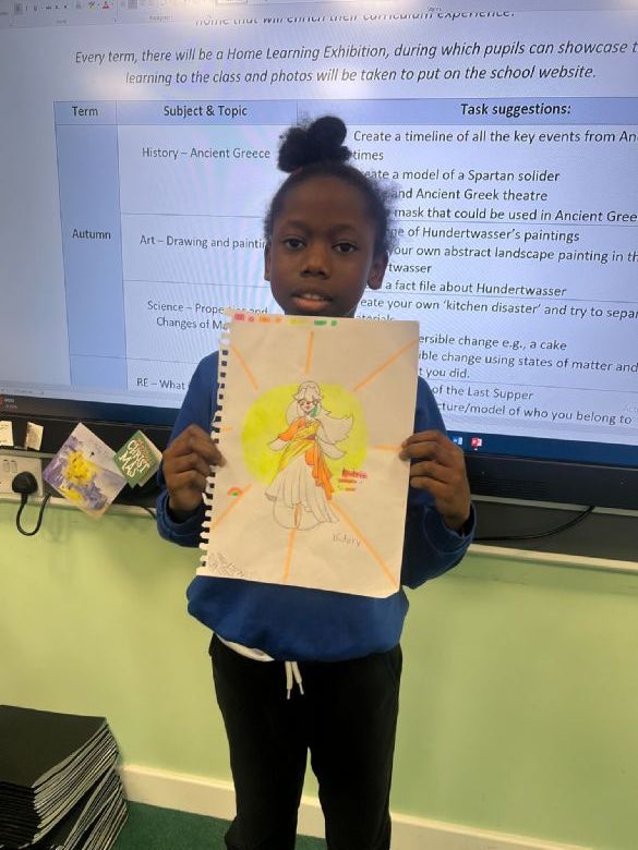 Every term, children are invited to complete curriculum enrichment home learning projects based on their topics in class. At the end of each term, classes hold their home learning exhibition where children show the class their projects and talk about what they learnt. We had some impressive pieces this term, using history, geography, science and RE topics. Check out the photos below of all these children being great, as our vision states.