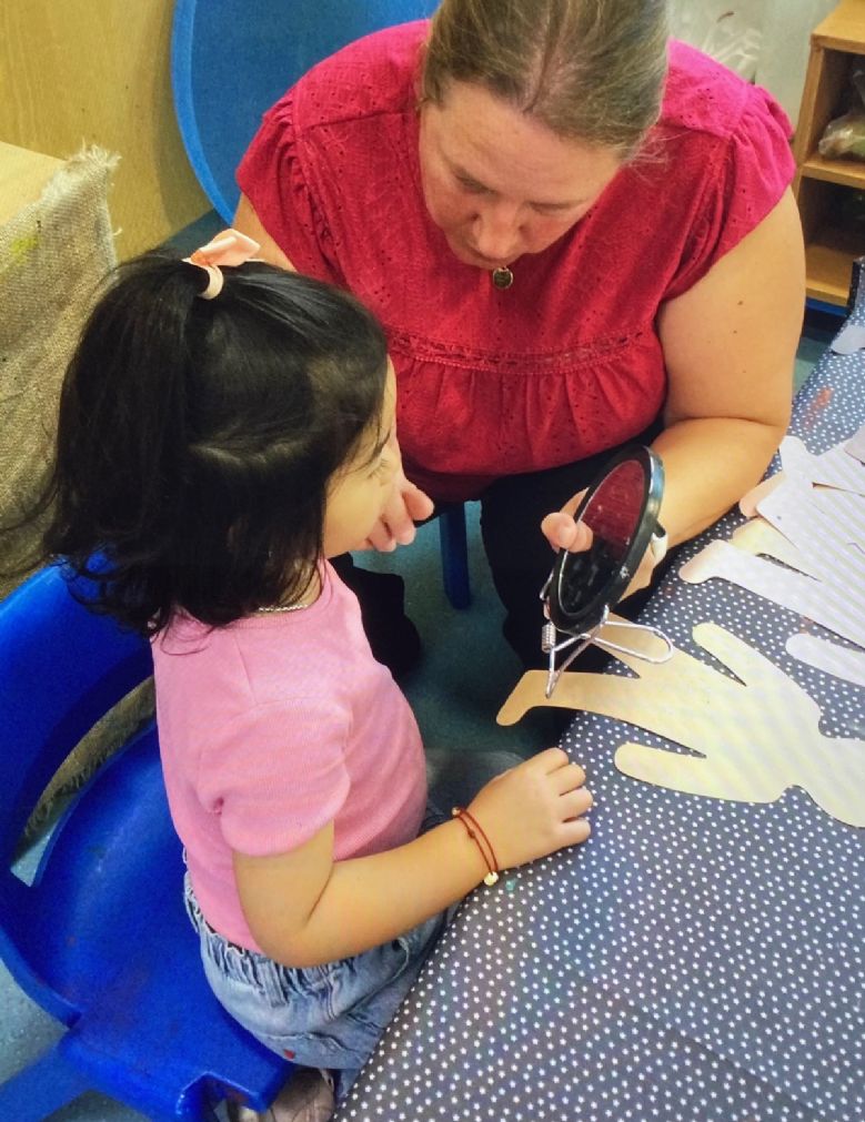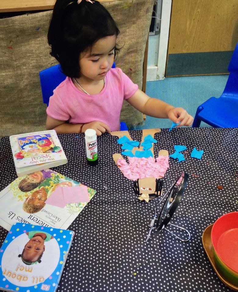 Indoors, we’ve begun our new topic “All About Me.” Each child has created their very own collage figure to represent themselves, which are now proudly displayed in the nursery. It has been great to see how confidently the children can spot not only their own figures, but also those of their friends. This has sparked wonderful conversations and has helped us celebrate what makes each of us unique.