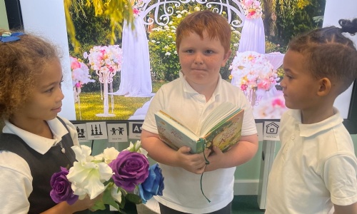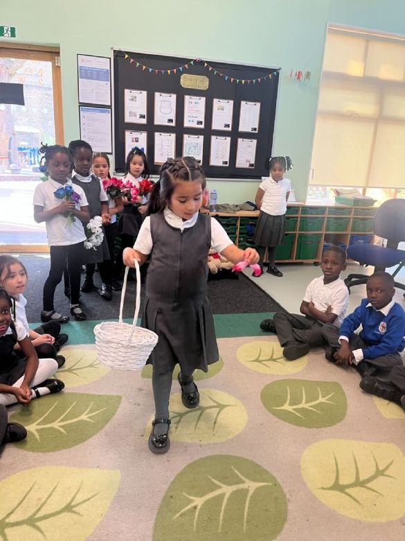 After learning about the ceremony, the children had the chance to act out their own wedding in class! 🎭 There were bridesmaids 👗, a flower girl 🌸, groomsmen 🤵, guests 👏, and of course a bride 👰 and groom 🤵. Father Richard played the role of vicar and guided the children through the service. Everyone really enjoyed taking part 😃, and it helped us understand what makes a Christian wedding so important and meaningful.