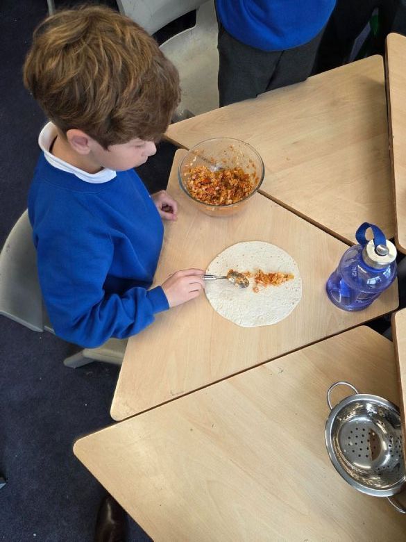 Our first stop on our street food journey was Mexico. Best Class learned how to prepare fresh ingredients safely, practising essential knife skills like the bridge hold and the claw technique. With these new skills, the children chopped peppers, tomatoes, onions and herbs before assembling their nutritious vegetarian burritos. Packed with beans, vegetables and flavour, these colourful wraps ticked all the boxes for a nourishing street food option.