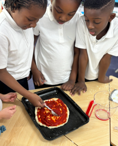 Year 4 enjoyed making bread rolls and pizza during D.T day.