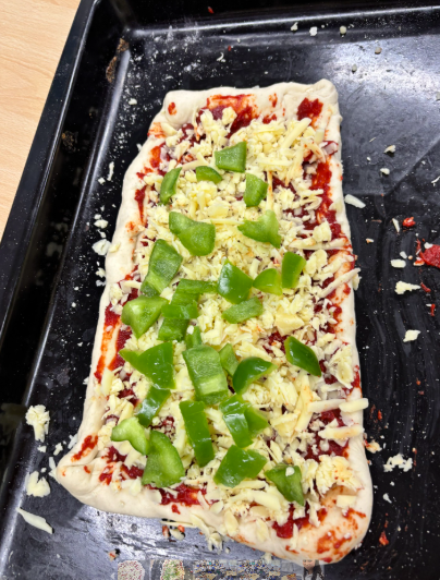 Next came the pizza-making challenge! Following a similar process, the children created pizzas entirely from scratch—this time using a yoghurt-based dough. After mixing the ingredients, they kneaded the dough and rolled it out into their chosen shapes. Tomato purée and cheese were added as toppings, with some children choosing to include vegetables for an extra nutritious boost.