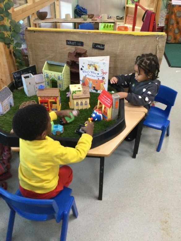 Alongside this, the children have been using our small-world town to create their own imaginary play scenarios. They also built houses using construction, working together and sharing resources.