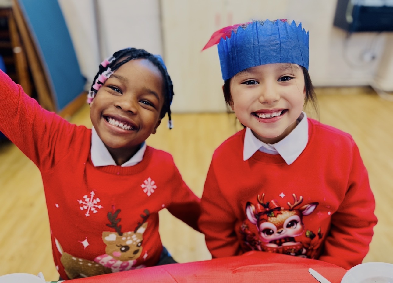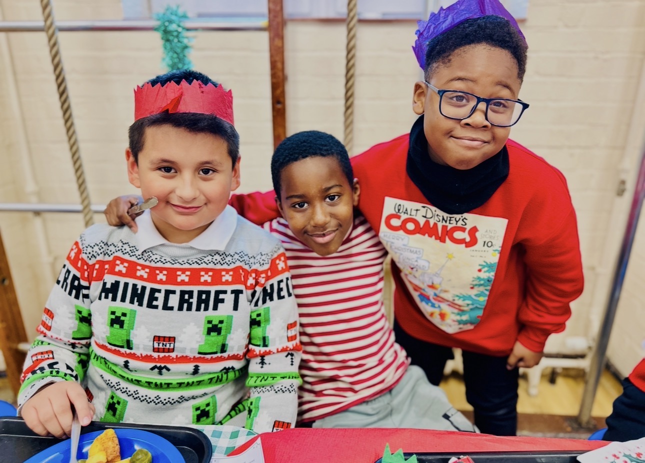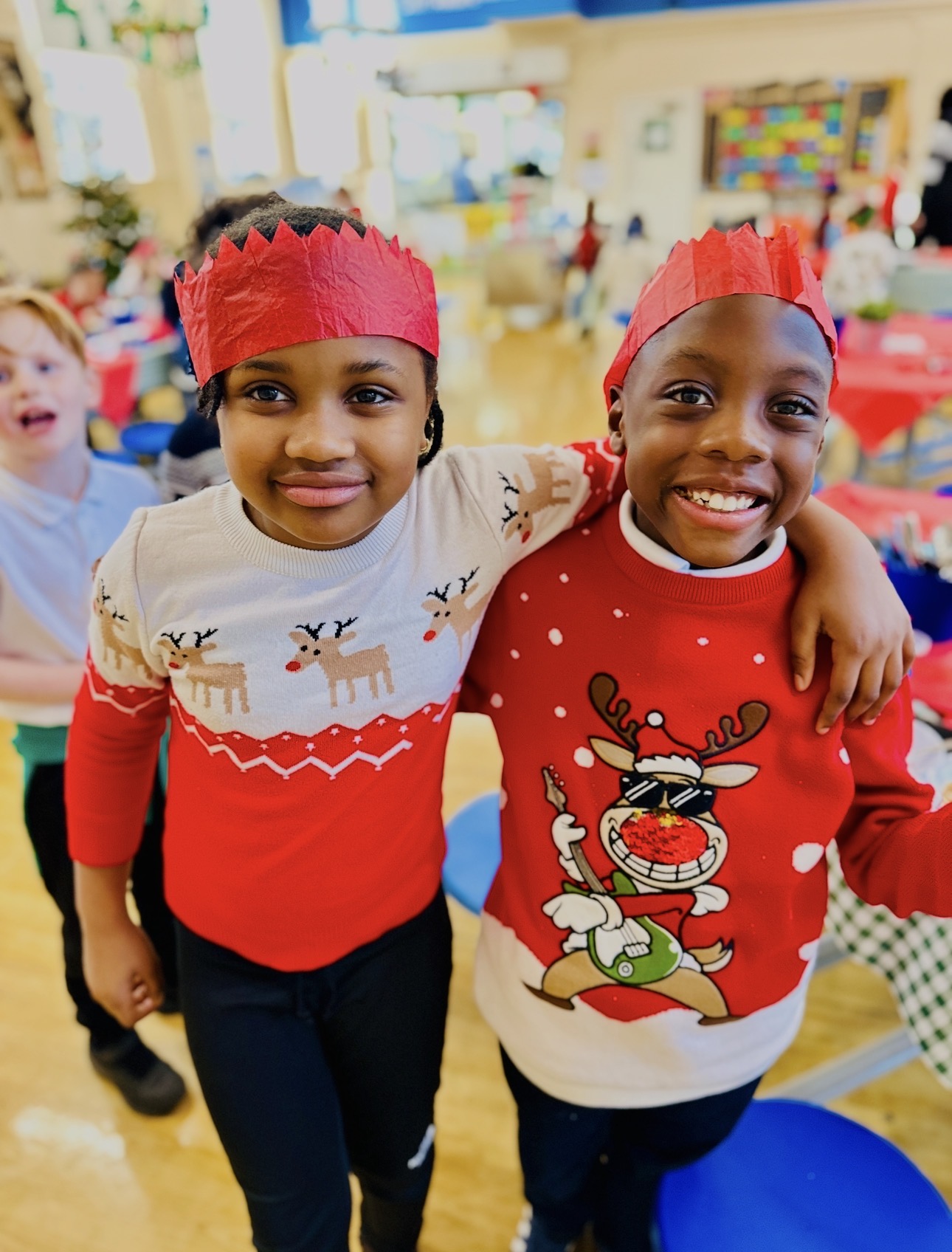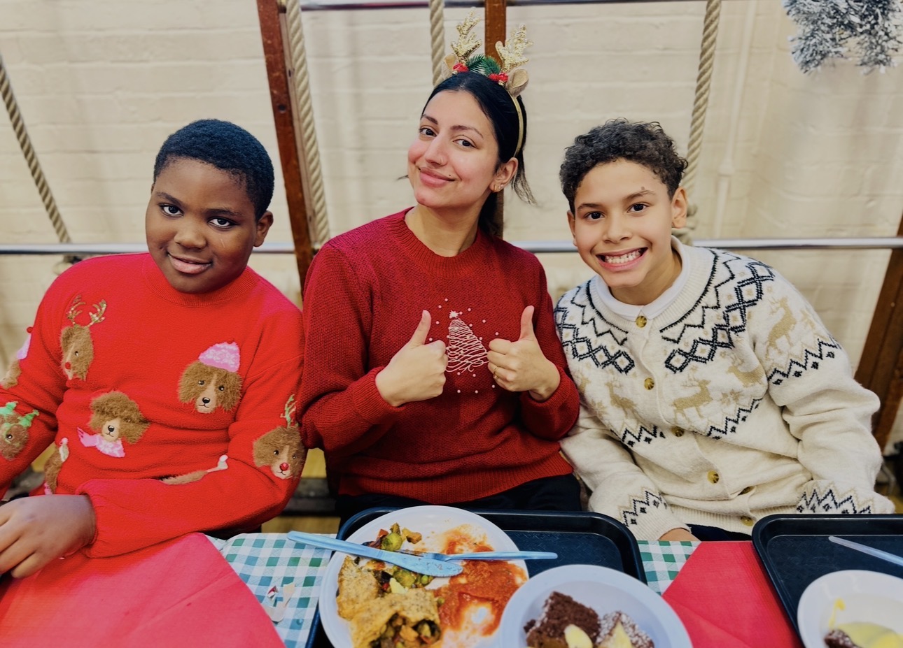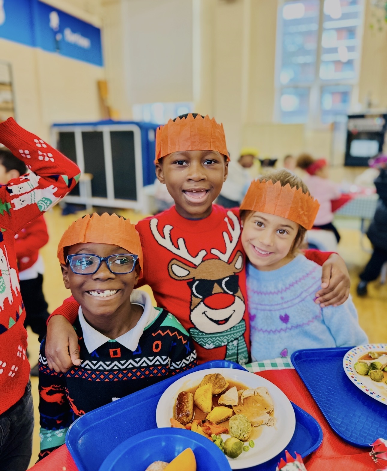 The hall was filled with festive cheer — crackers popping, Christmas jumpers on full display, and everyone singing along to well-loved seasonal tunes. Pupils and staff shared a delicious meal with all the trimmings, from golden roast potatoes to perfectly cooked vegetables and, of course, plenty of gravy.