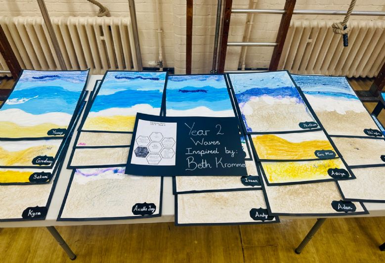 • Year 2 explored waves inspired by Beth Krommes, using flowing lines and movement.