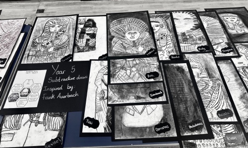 • Year 5 explored subtractive drawing inspired by Frank Auerbach, experimenting with tone and texture.