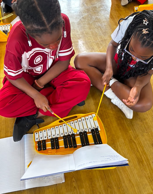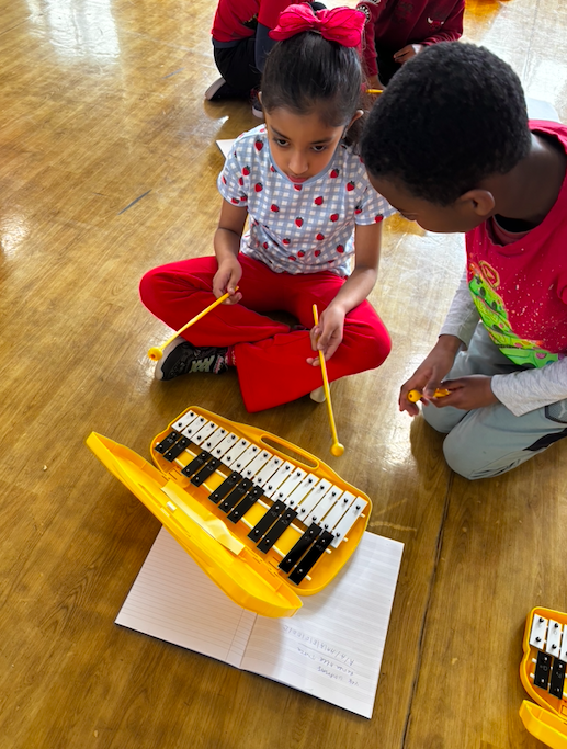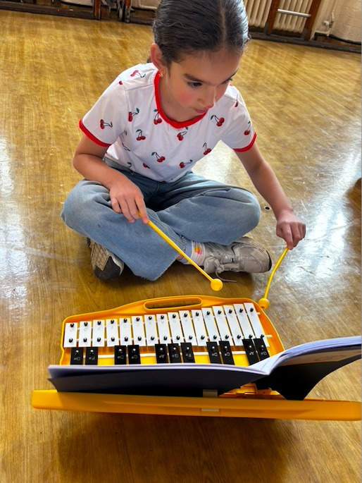 Using musical notation, pupils worked carefully to read and perform sections of the composition on the glockenspiels. This required focus, coordination, and teamwork, as they practised keeping in time and supporting one another to achieve a polished performance.