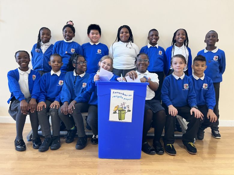 - Once a week, Year 5 children collect the recycling bins and take them to Ben, our Premises Officer, who them empties them. They then have to return them to the class. Each child has a designated bin they are responsible for.