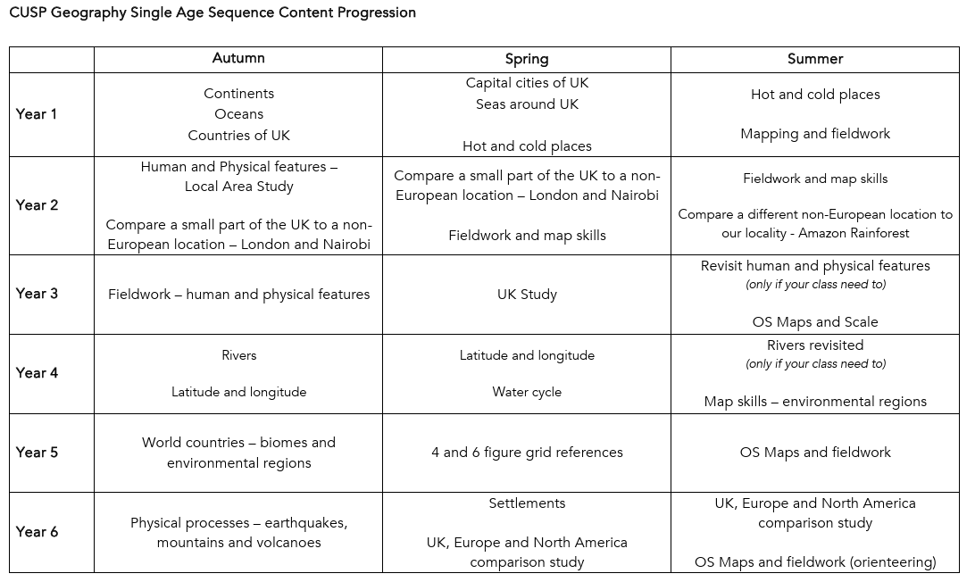 Of their Geography curriculum, CUSP say: